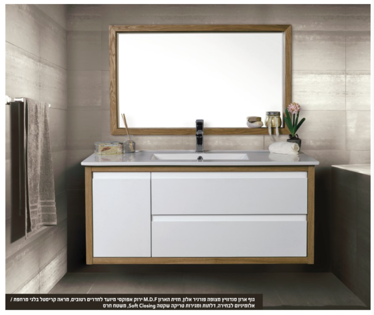 ארון ספארטה לבן + כיור + מראה מרחפת